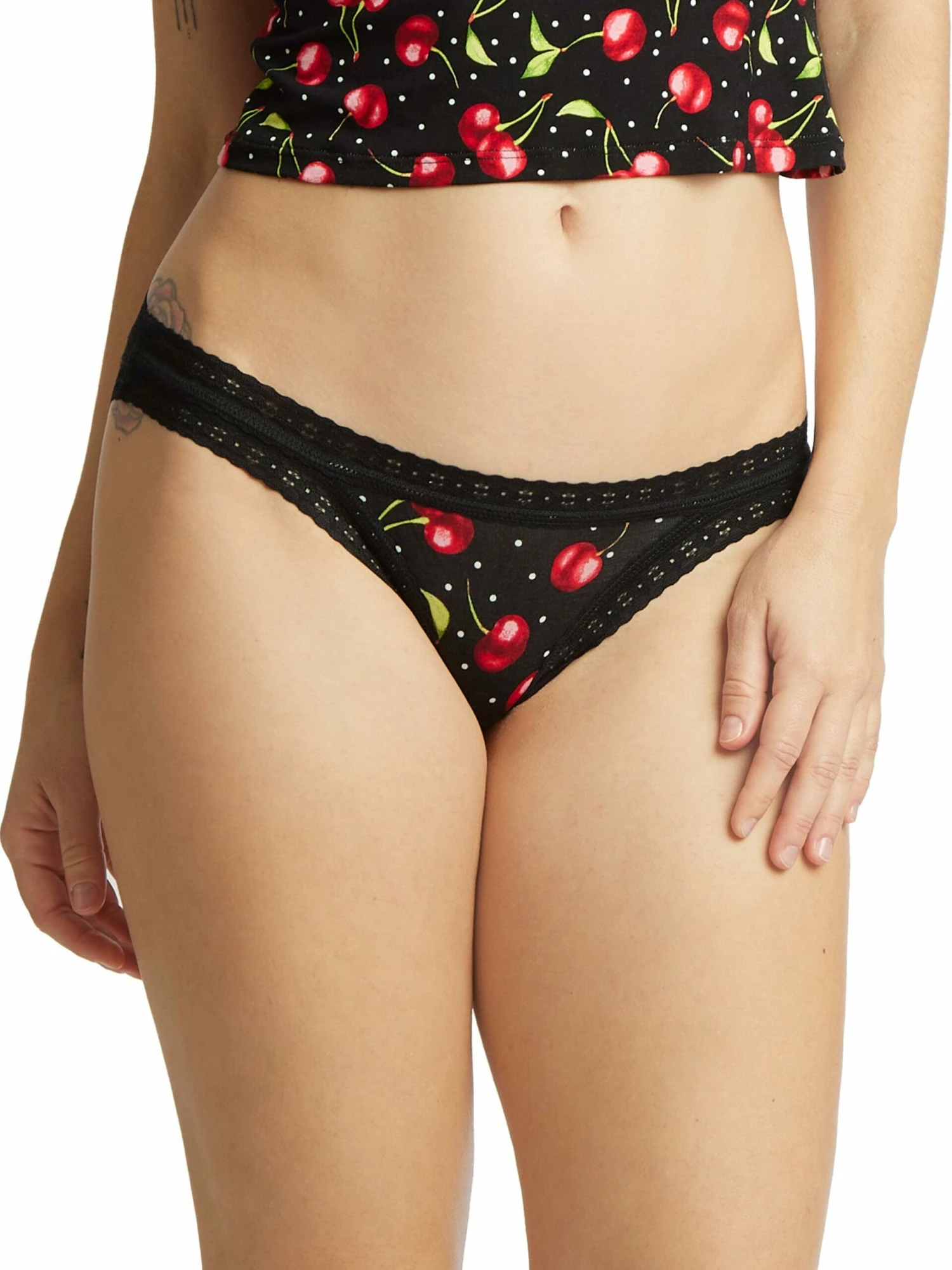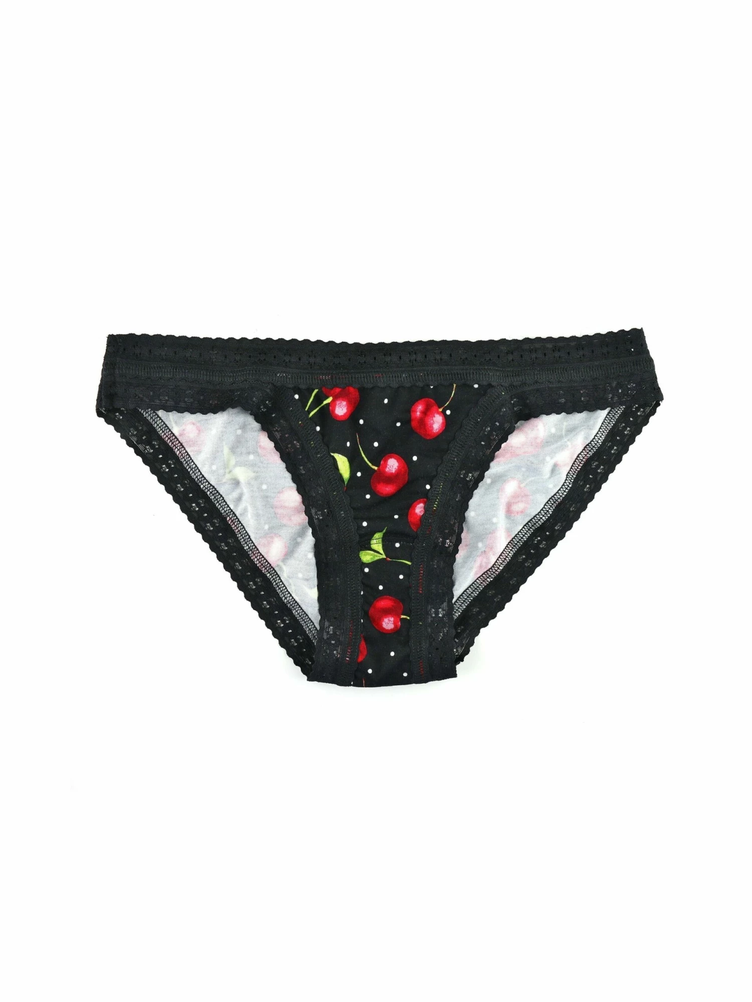 The Brazilian Bikini is a bikini-style panty trimmed with soft lace and has a medium rise with cheeky back coverage.