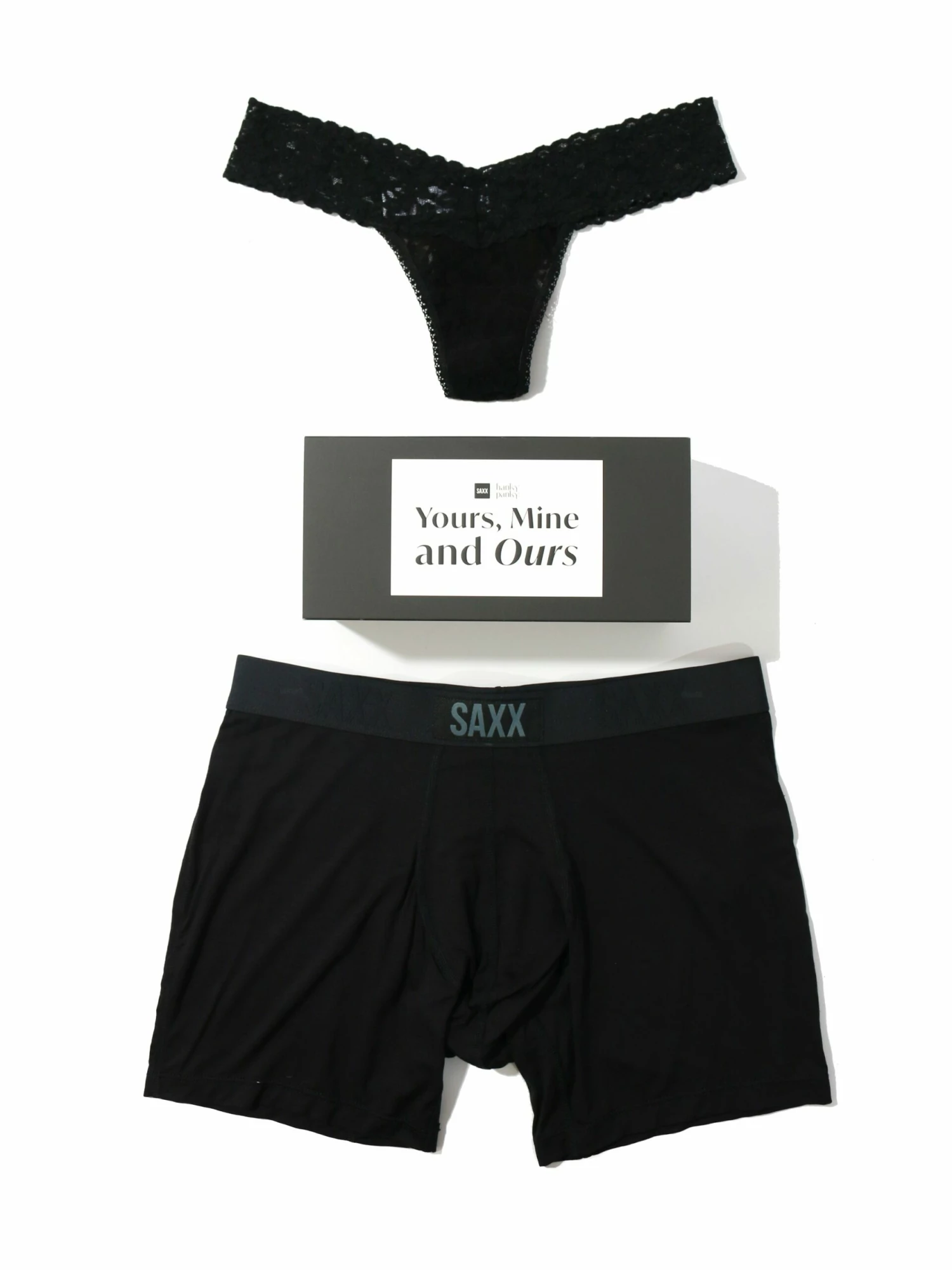 One for you, one for me. With matching colors and prints, our exclusive collaboration with Saxx Underwear is the perfect couples’ gift this holiday season that pairs an iconic Hanky Panky Signature Lace thong with a SAXX Boxer Brief.